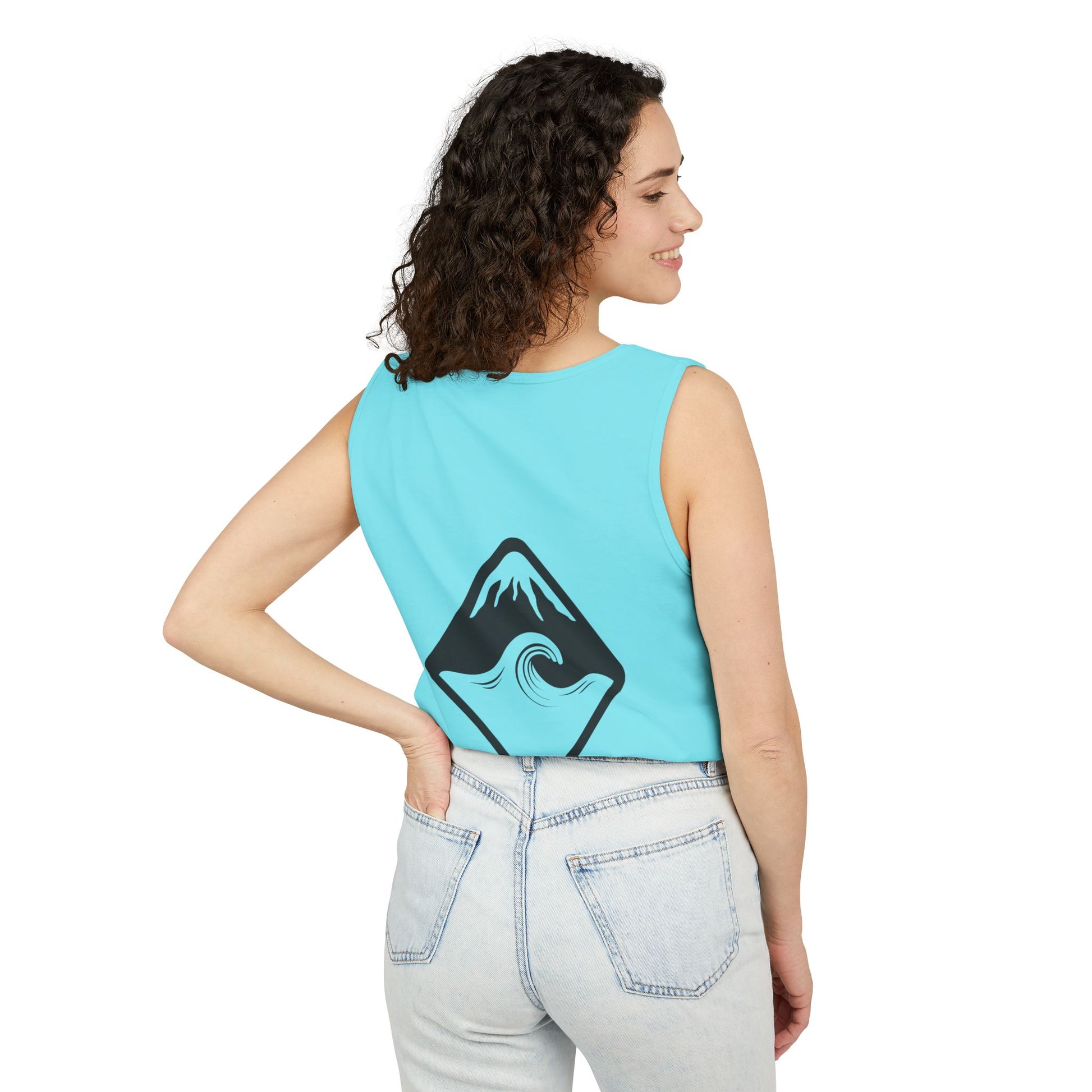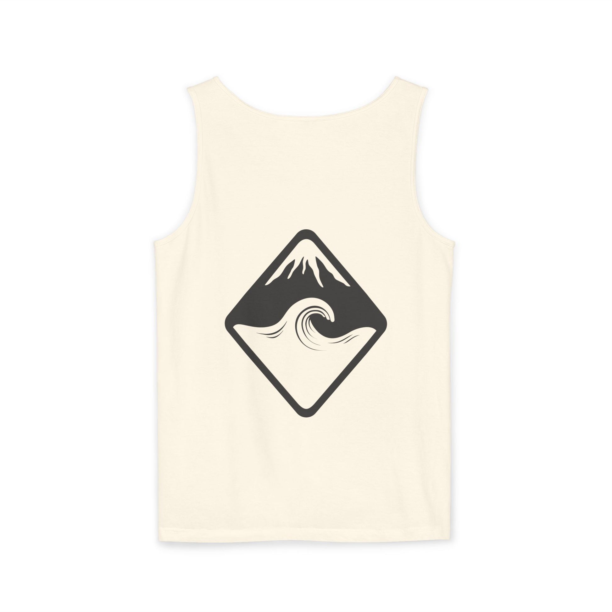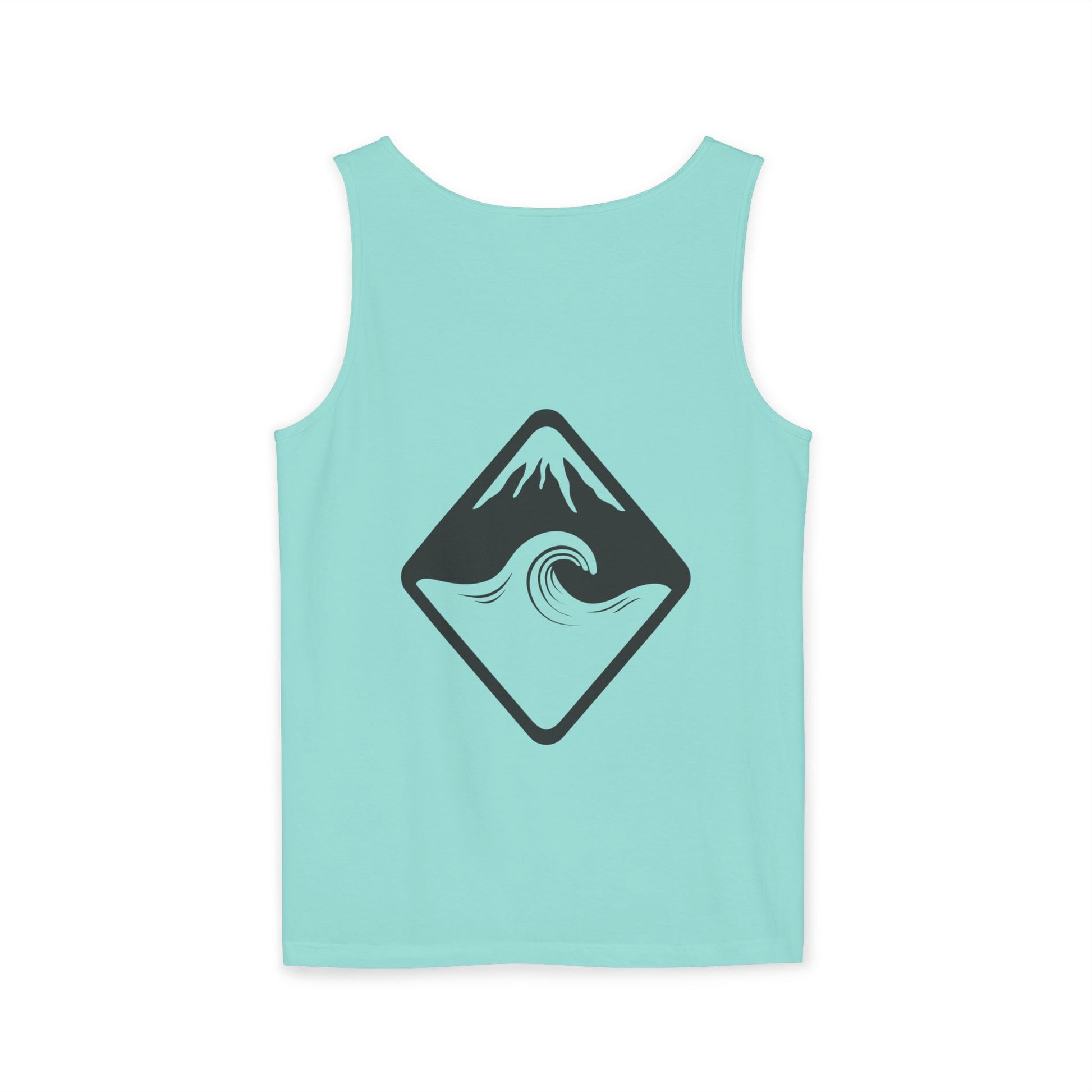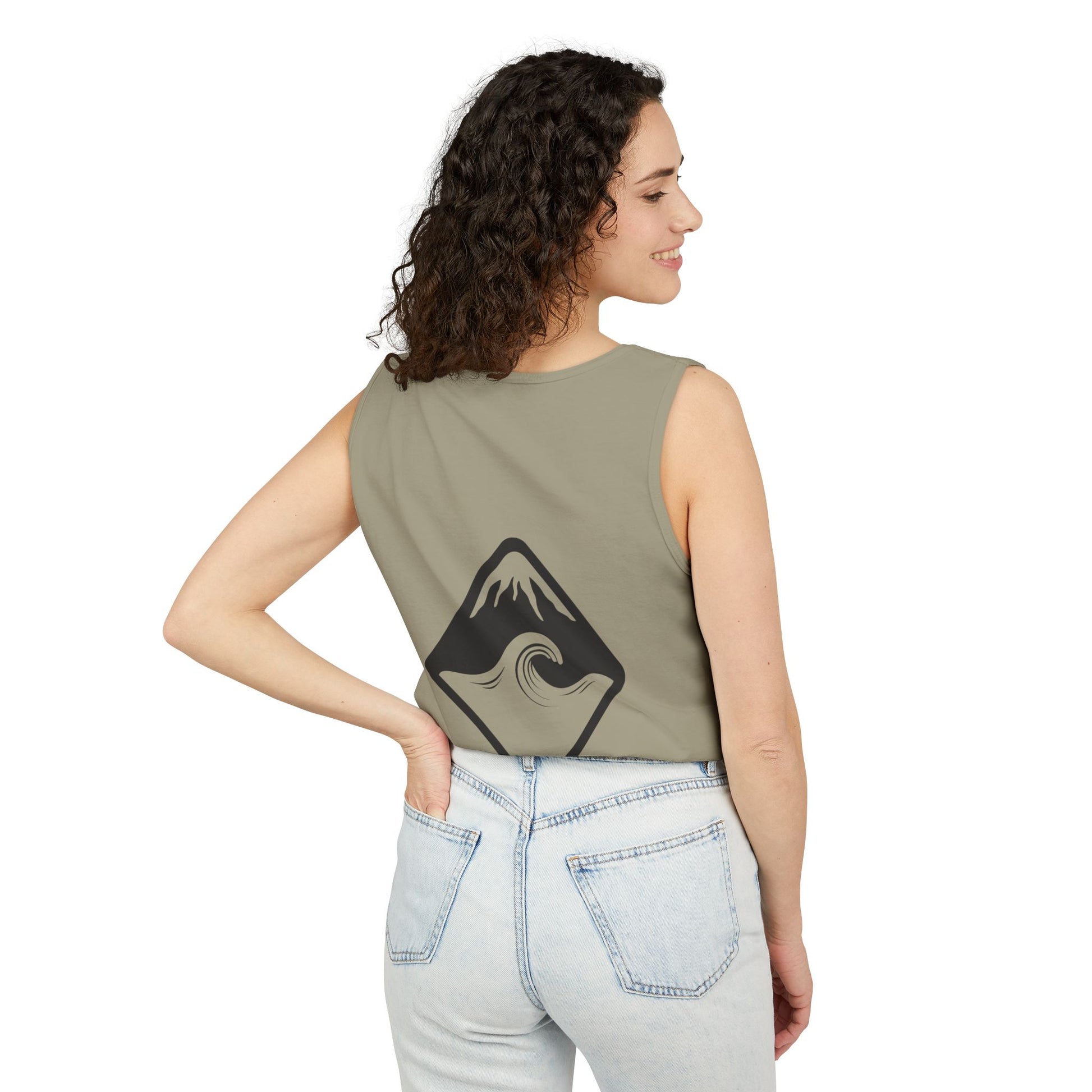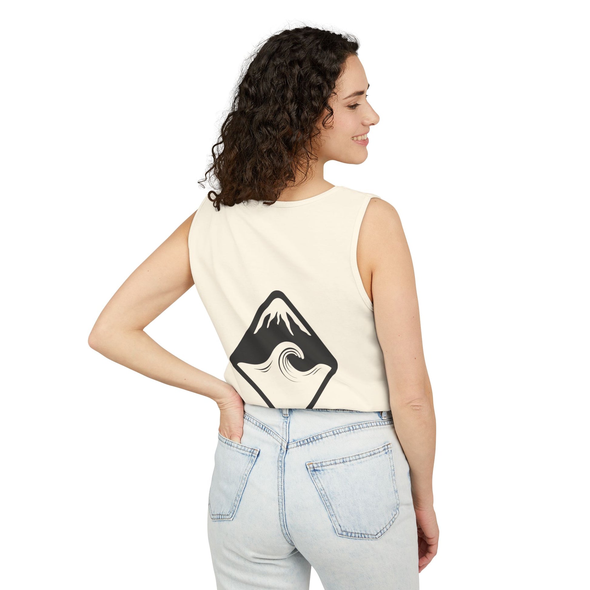 Discover the perfect blend of comfort and style with this unisex garment-dyed tank top. Crafted from 100% ring-spun cotton, it offers a soft, smooth touch—ideal for those warm summer days or relaxing afternoons. The relaxed fit ensures it drapes effortlessly, making it a versatile addition to any wardrobe. With a unique design featuring a striking mountain and wave motif, this tank top is perfect for beach outings, casual gatherings, or yoga sessions. It's a thoughtful gift for outdoor enthusiasts, beach lovers, or anyone seeking a stylish yet comfortable staple. This tank top is a great choice for summer celebrations, wellness events, and casual meet-ups with friends, adding a touch of personality and flair to your life.